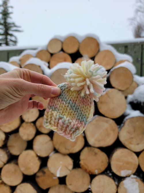 This mini toque by fibers + pines is a quick and fun project you can finish in minutes. It is perfect for using small yarn scraps and makes a cute decoration or a tiny gift.