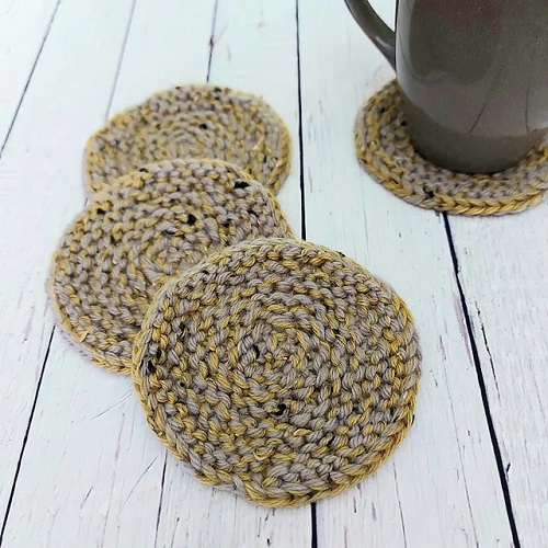 These round coasters by Handknithugs are quick to knit and very useful around the house. They help protect surfaces and are perfect for trying different colors while using up extra yarn.