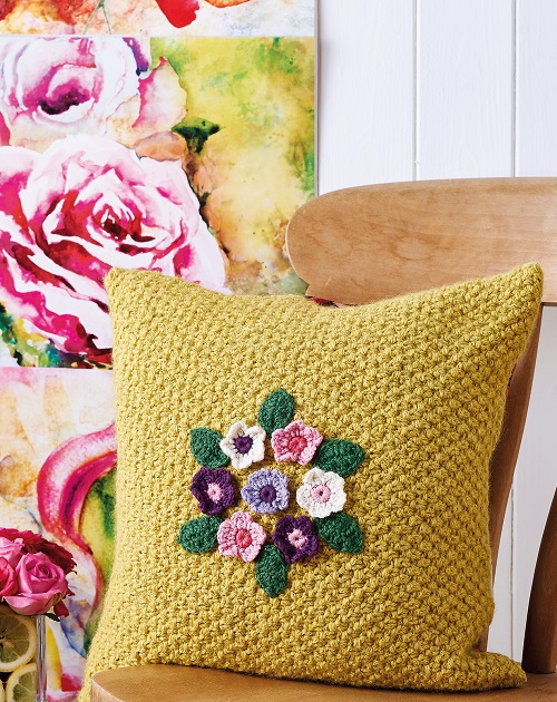 The floral cushion panel by Let’s Knit is a fun way to give your cushions a little different look. Instead of keeping things plain, you can add soft floral details that make the cushion stand out in a simple, cheerful way.