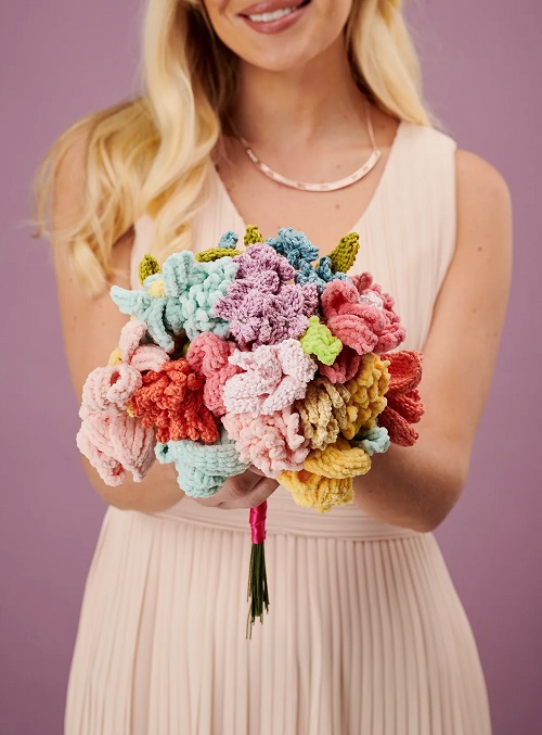Check out this beautiful champion bouquet by Lion Brand Yarn. It is a good option for making a small bouquet that can be used as a gift or for decoration. Beginners can make it easily with the easy instructions.