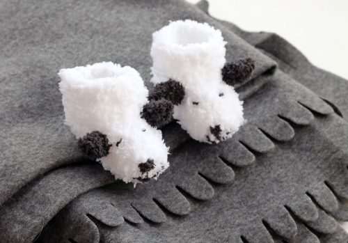 These fluffy baby booties by Handy Little Me are soft to the touch and will keep the baby’s feet really warm. The techniques you need to know for this are casting on, casting off, and knit and purl stitches.