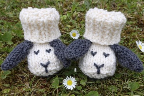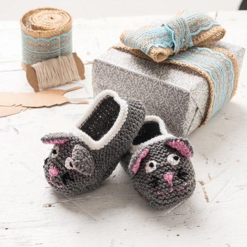 Fill your baby’s wardrobe with these booties by Ann Franklin, featuring a simple garter stitch all over and no leg parts to work. The ears, eyes, and nose are small knitted pieces stitched onto the tops, and they’re finished off with embroidered mouths, whiskers, and eye centers.