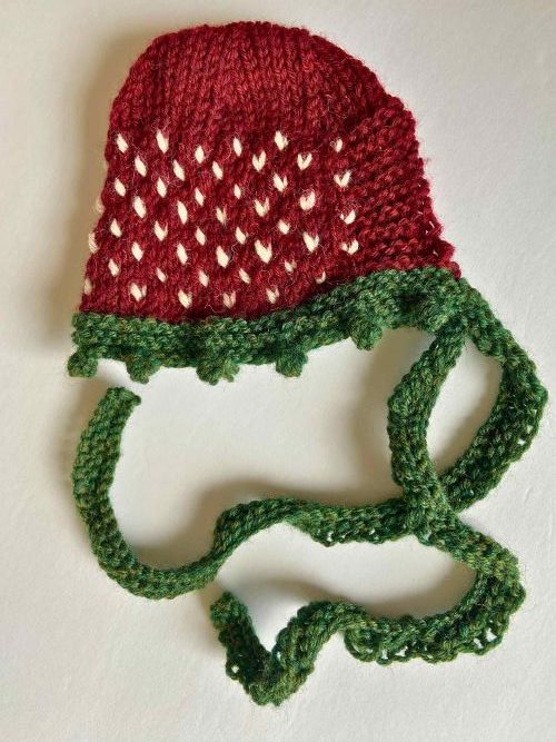 6. Knitted Strawberry Bonnet