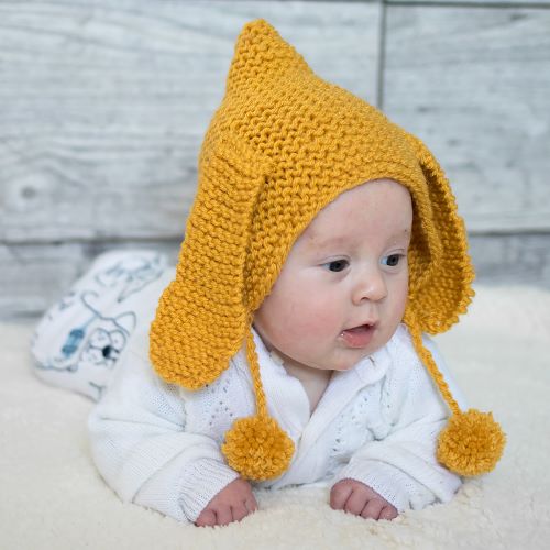 The big bearly bonnet from Pure Stitches is an adorable knitted baby bonnet featuring cute bear-inspired details. It features small, rounded ears on the top that give it a playful bear look, making it especially charming for babies.