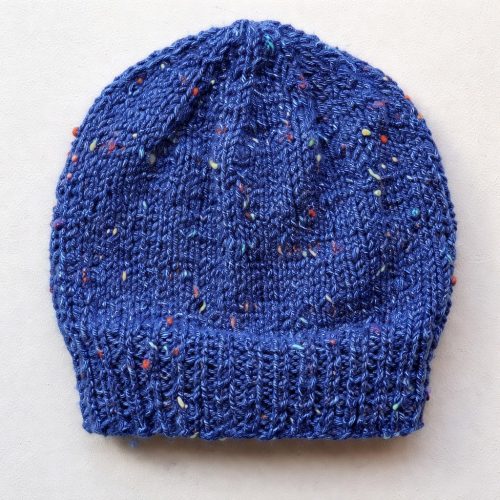 This round hat from Christy Hills has a minimal and neat design. It’s knitted in round with basic stitching techniques, 4 mm double-pointed needles, and medium worsted weight yarn.