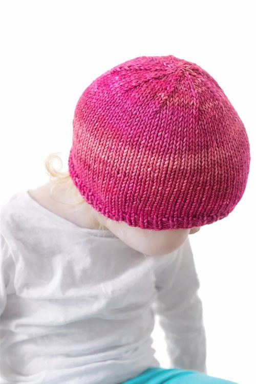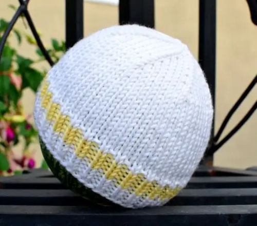 Kirstie McLeod has shared this striped, simple baby hat. You can play around with color combinations to match different outfits. The stripes give the hat a playful look.