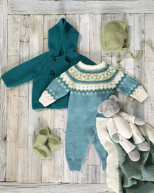 Have a look at this cute anker’s onesie by Petite Knit. It features a simple round yoke pattern with a right-to-left progression and a simple increase. And the front button closure makes it easy to wear with a well-dressed look.