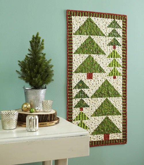 An easy pine tree quilt pattern by Caroline Fairbanks is darling for the holidays or any time of the year. Sew up this quilt pattern to keep you and your loved ones cozy all season long.