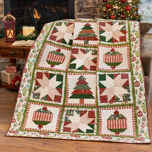 Jen has shared helpful tips and piecing techniques for this delightful holiday project. The Christmas lantern, star, and tree are all in this pattern to make up this quilt, your favorite in no time.