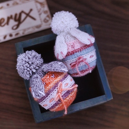 Add a festive touch to your projects with this knitted easter gift from Cheryx. It features a soft, round shape with simple detials that give it a cheerful look. They are a great way to experiment with colors and use your leftover yarn, also.