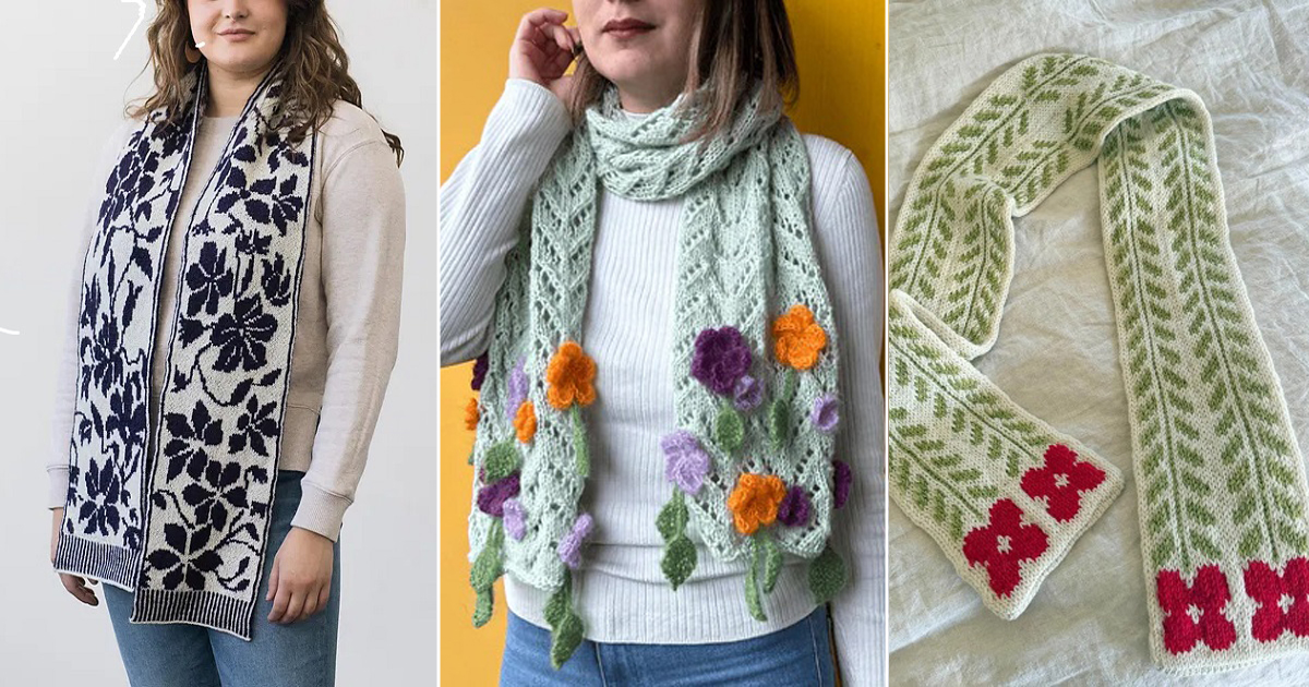 6 Knitted Spring Floral Scarf Free Patterns