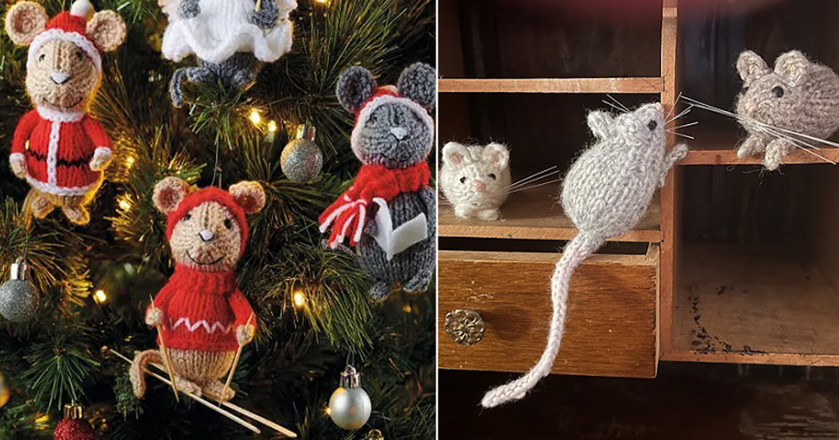 Knitted Mouse in a Group Free Patterns are perfect for making a cute family of mice. Fun, easy, and great ...