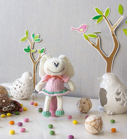 A sweet bunny by Leanne Wilkinson with an orange hoodie is a classic style that never goes out of style. It’s small, neat, and easy, suitable for gifting and decoration. It is made with the help of light worsted-weight yarn and US 3 and 4 knitting needles.