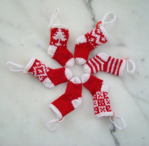 The cute little stocking on the Christmas tree and the window will make it eye-catching. Julie Williams knit this stocking flat in Fair Isle and intarsia designs, using needle sizes of US 2-2.75 mm.