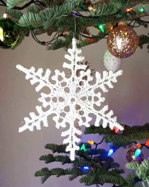 Elena Maltseva created a snowflake that may look complicated, but it’s easy to knit. You can knit it any desired size using needle sizes of US 0 and 5. A series of cast-on stitches form the points of the snowflake on/off, otherwise known as picots.