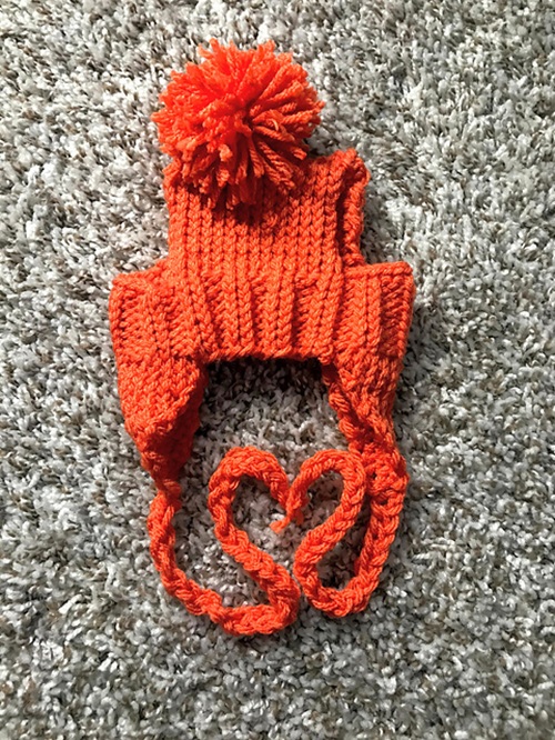 Knit a matching color hat for your loyal friend, and they will adore you in this orange color hat. It is knitted using US 9 circular or US 4 mm double-pointed needles and US 9 straight needles. Sara creates this beautiful pattern.