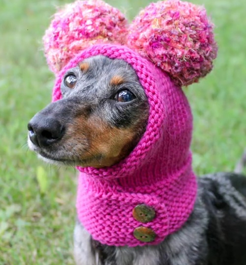 Every dog needs a comfortable hat, which is easy to make, and this pattern is provided by Amoena Online. The tube is knitted in the round using a US 4 needle. You can experiment with it by making rabbit ears or reindeer horns.