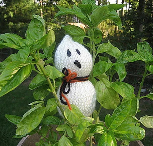 Knit a little scary friend for your Basil plant; it’s a quick knit and a great way to use your scrap yarn. You just need to play around with casting on and off to create the curved top and bottom, just like Trish Albanese did.