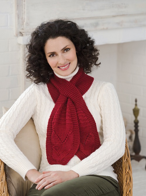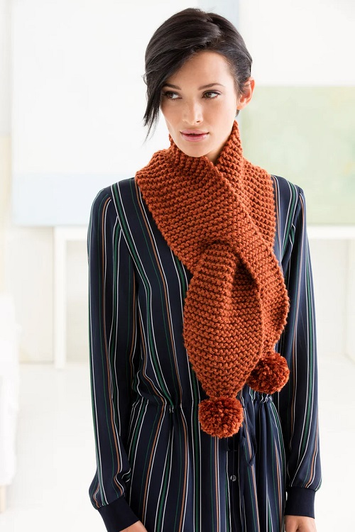 A knit scarf pattern by Lionbrand Yarn is made with super-bulky-weight yarn and is beginner-friendly. You can try it in different colors and pair it with your shirt in the fall and over a poncho in chilly winters.
