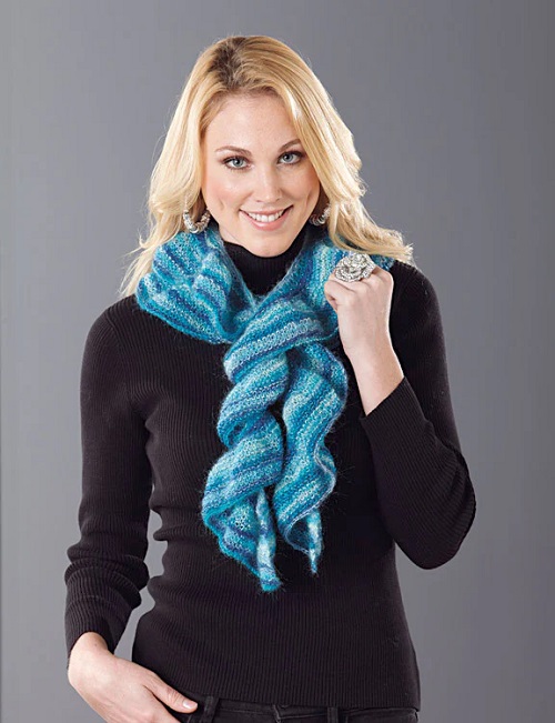 Add waves of ocean to your collarbone and enhance the beauty of your clavicle and neck with the Mary Maxim Yarn and Crafts scarf. The spiral waves in shades of blue will trail down and ace up your fashion game.