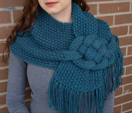 A lovely, soft knit cowl scarf from Etsy with a signature Celtic knot and cables that make it more interesting. For this pattern, you need to have 9 mm knitting needles, chunky yarn, a stitch holder, and tapestry needles.