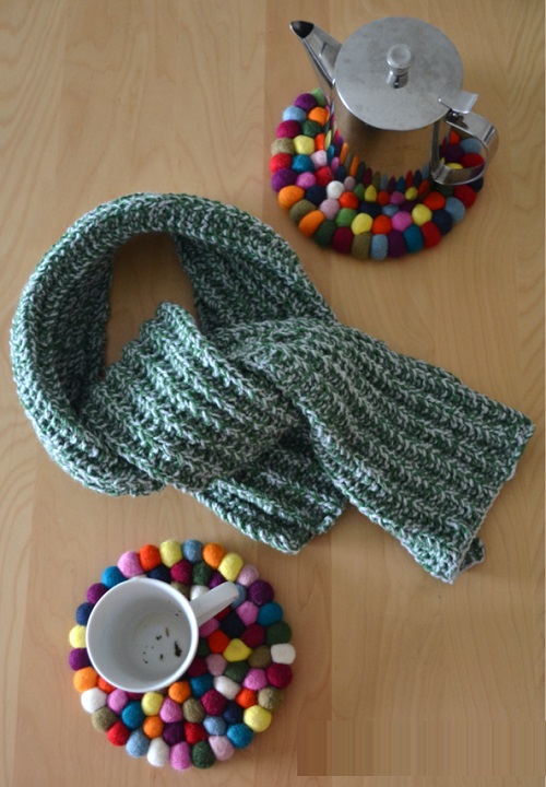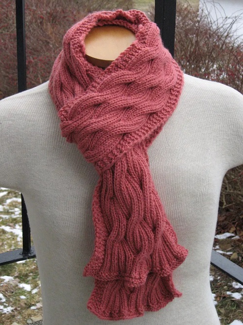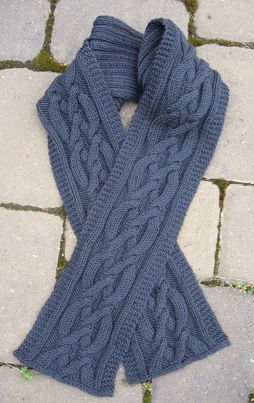 If you want to knit something classic and reversible, then have a look at this Kris Hanson knitted scarf. It features a cable design that gives it a little textured look on both sides, so that you don’t have to worry about which side to show. The scarf goes perfectly with jackets, dresses, etc.