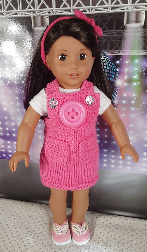 If your favorite color is pink, this knitted pink jumper by Jo Em is a lovely outfit to make for your doll. The design is cute and works well for an 18-inch American doll. You can pair the jumper with tiny shoes, hats, or leggings.