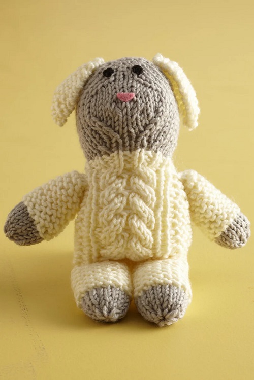 The lamb toy in cables will be your favorite. This expert-level Lionbrand pattern is available in one size. Try knitting this out and gift it to your children, nieces, and nephews.