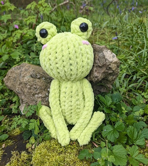 Don’t you think this army looks cute together? If so, check out Noneed4thisdesign for this loom-knit pattern. Each frog has simple details, a clean, neat finish, making them more charming. You can make them for your home display or use them as a gift.