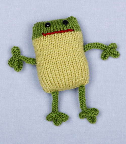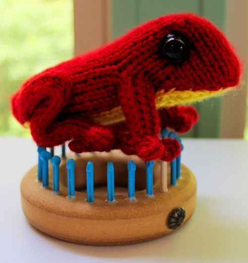 If you love colors, then you must check out this dual-tone frog pattern from LionBrand. All you need is medium worsted yarn in two different colors and a loom knitting machine. The dual tone gives it a cheerful and colorful look.