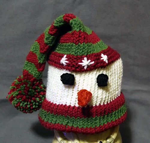 Kathy McGuire created a lovely snowman hat that every child will love, and you will enjoy making it for them. The knitting gauge is four stitches and six rows per inch in the stitch pattern.