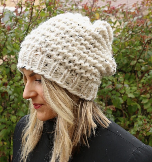 A loom knitting hat video by Melanie Ham is beginner-friendly. It is a great way to begin working with yarn and loom projects, as they work up really quickly. The finished hats have a very nice drape.