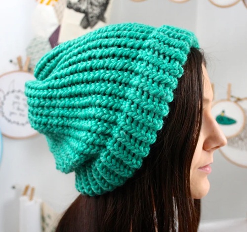 A fantastic beginner project by Jessyratfink is super comfortable and warm. Keep knitting until you’ve done at least 20 more rows. Once you finish this slouchy hat, you will be a fan of loom knitting.