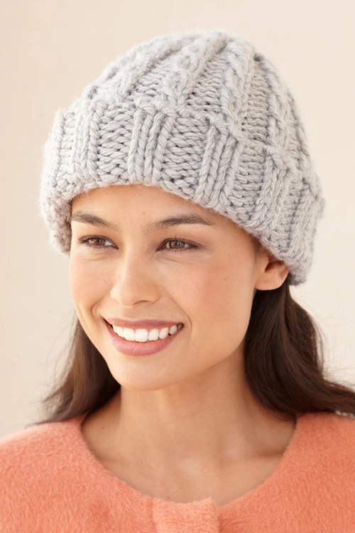 Cables are fun to loom-knit and add grace and elegance to any item. The Loom Muse cabled hat could be paired with your cabled cardigan. Knit it in a matching color with your cardigan.