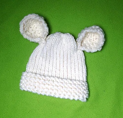 A cute hat with ears by Mireia Marcet is knit one round at a time, wrapping and knitting. Another round by purling, and repeat this until the brim measures approximately 4.5 cm (8 rounds total).