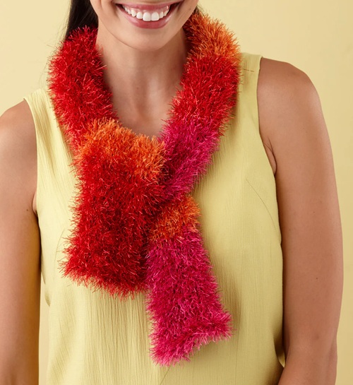 This multicolor scarf by Lion Brand is an easy winter project. It works up quickly on the loom and uses basic stitches, making it great for beginners. The scarf feels warm and soft. It’s a simple, cheerful accessory that’s enjoyable to make and nice to wear.