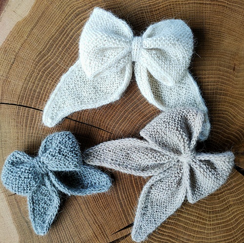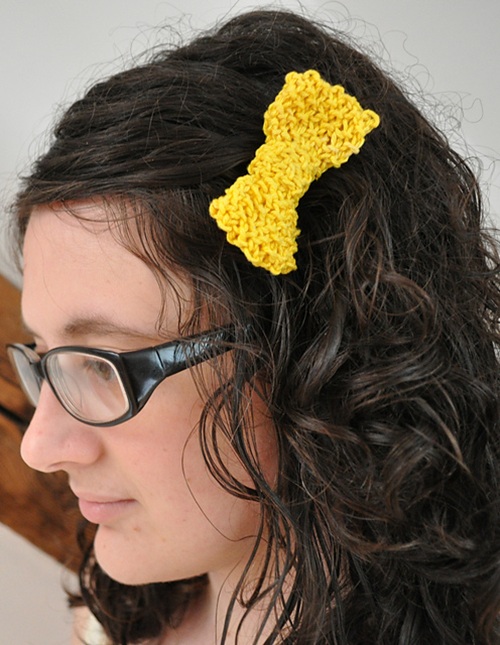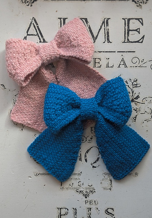 Laura ROCHE-MARTIN has designed this useful and cute hair accessory. You can choose to make a bow to decorate your house at Christmas, or a hairpin, or a nice brooch. All you need to do is use garter stitch with sport yarn and a US 4-3.5mm needle.