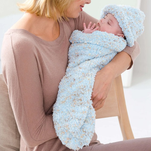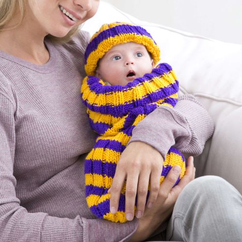 This set by yarnspirations includes a cozy cocoon and a matching cap, making it perfect for a complete baby outfit. It is easy to knit and works well for gifting or everyday use.