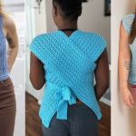 A backless top pattern, designed by madebyroshpatterns, is suitable for advanced beginners or intermediates. It also has sleeve options and is adjustable in length. You can wear it with trousers and flaunt your back while on a DJ night.