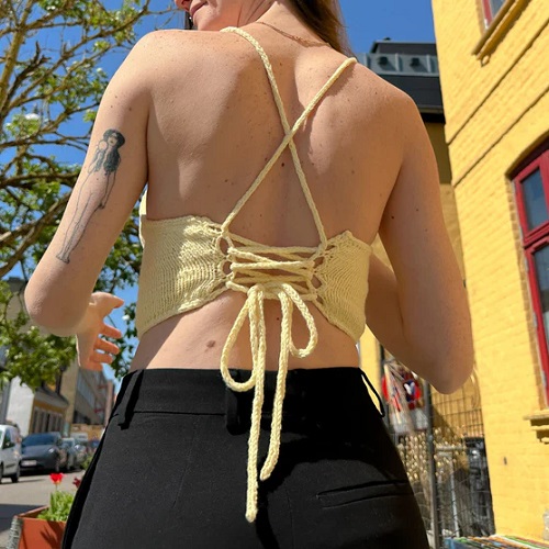 A cropped tank with a split back and a beautiful lace pattern makes it attractive. Pair it with your favorite shorts or a skirt, and you are ready to go on a picnic date. This pattern is available on the Bitchcraft blog.
