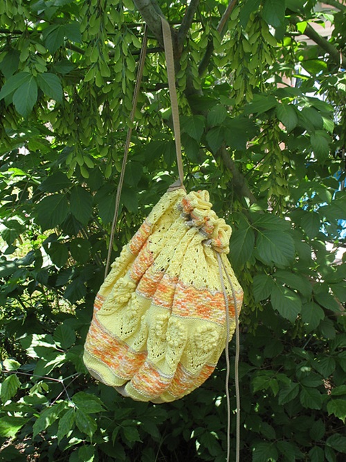 Another super adorable bag from Ravelry. This looks classy and perfect to carry on any picnic or park outing to show off your handcrafted style.