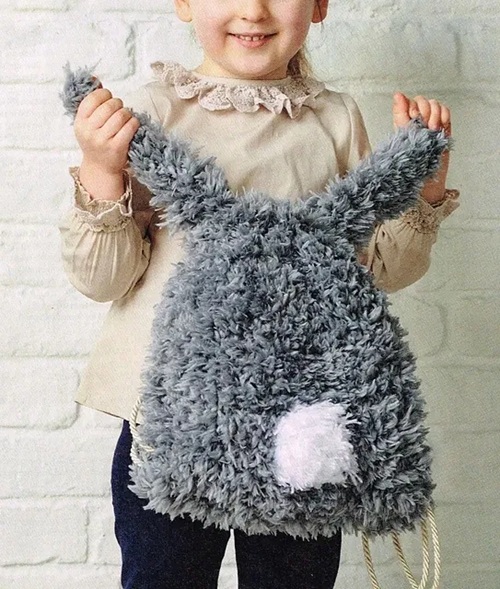 Make this fluffy bunny bag from Ravelry. A perfect gift for your little one on their birthday. It is very simple yet stylish, making it the best charming accessory for carrying treats or toys.