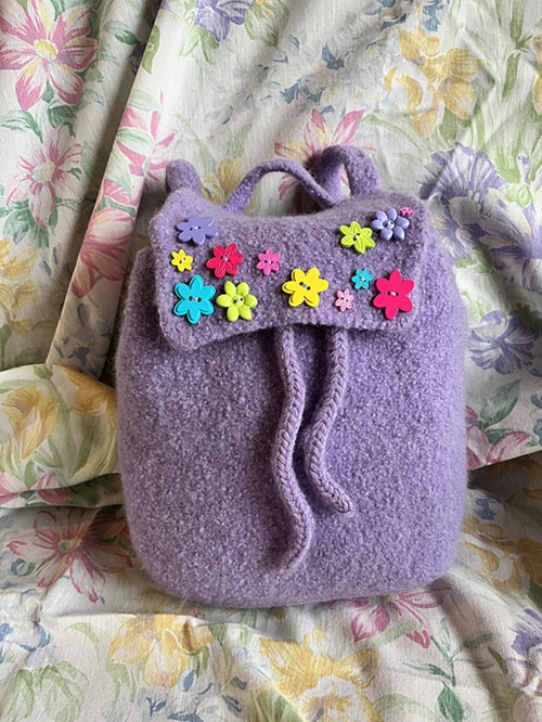 To make this bag pack, you only need to know some basic knitting techniques. You can customize the color to match your vibe, by Karen Fournier.