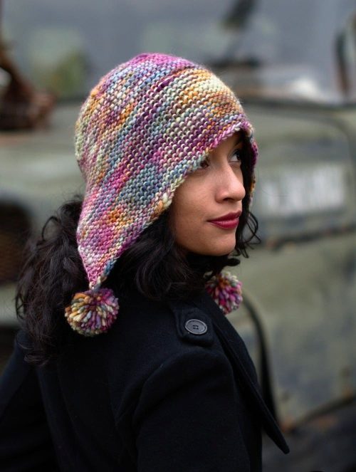 Woolly Wormhead has designed this neat and well-shaped bonnet. It is knitted in garter stitch with just a little bit of slouch, and the back of it is worked with a spiral decrease pattern. All you need is chunky-weight yarn and a US 8 double-pointed needle.