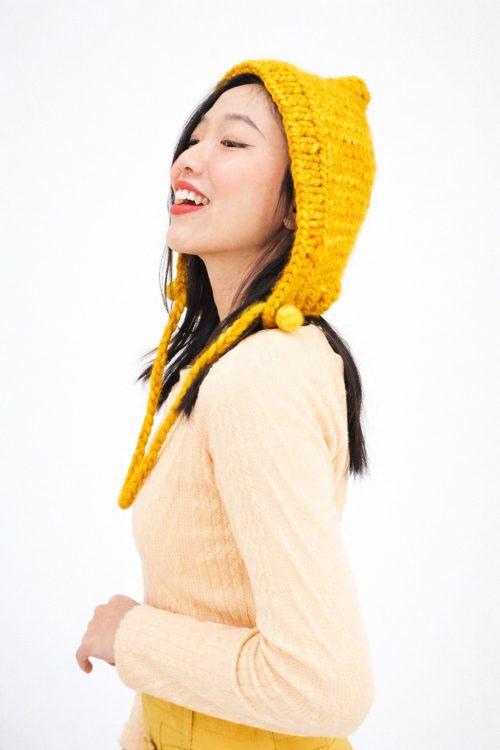 The pixie bonnet knitted pattern by Gwen Heng has a cute and playful look inspired by classic pixie-style bonnets. It has a snug, gently shaped fit that sits nicely on the head and keeps it warm. And the best part is that it’s a nice option for everyday wear or photo-ready outfits.