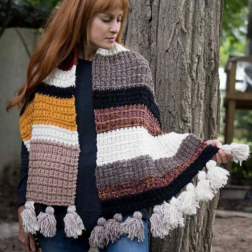 A lightweight intermediate skill-level pattern by Yarnspirations with layers of frills makes it a showstopper. Wear it over your trench coat and boots or over your turtle neck sweater and increase your fashion game.