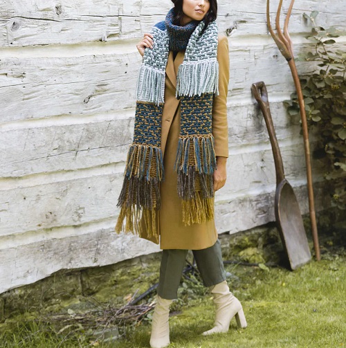 Won’t you love to wrap in a graceful blue-colored scarf? A Yarnspirations pattern will look great over your cardigan and sweaters. This will be a great last-minute gifting option for your loved ones.