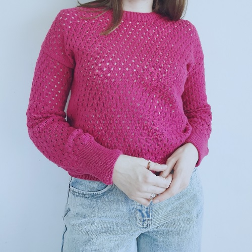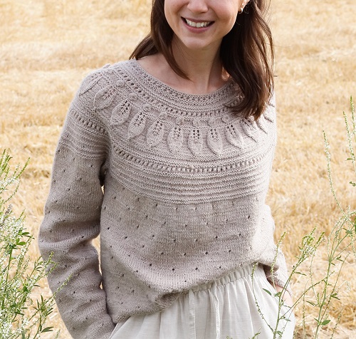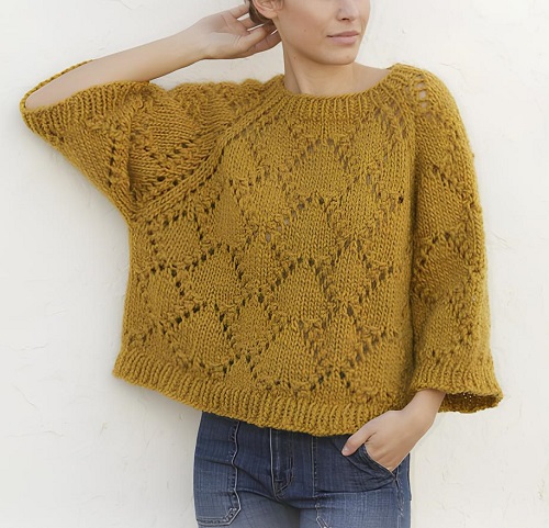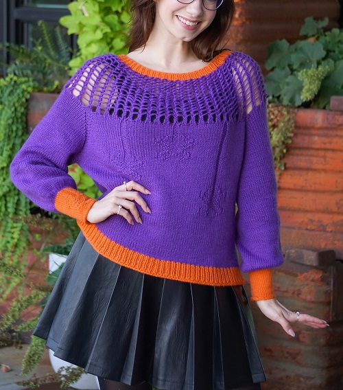 Are you looking for a sweater with an openwork yoke? Then have a look at Afifa Sayeed’s knitted sweater design. It has used drop-stitch yoke nodes, which create a spiderweb-like structure. Not to mention, beginners can also make it quickly and easily.