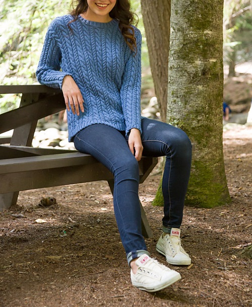 The Selja knitted sweater by Ronja Hakalehto is a stylish crew-neck design that has beautiful cable detailing down the front. You can easily make it one for yourself and one for your BFF with the easy construction process.