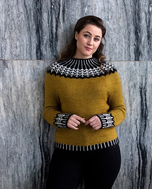 Hanne Rimmen has designed this lovely sweater featuring Nordic-inspired detailing around the yoke, cuffs, and hem. Whether you pair it with jeans or a skirt or layer it over a dress, this sweater is a useful wardrobe piece you will love to wear again and again.